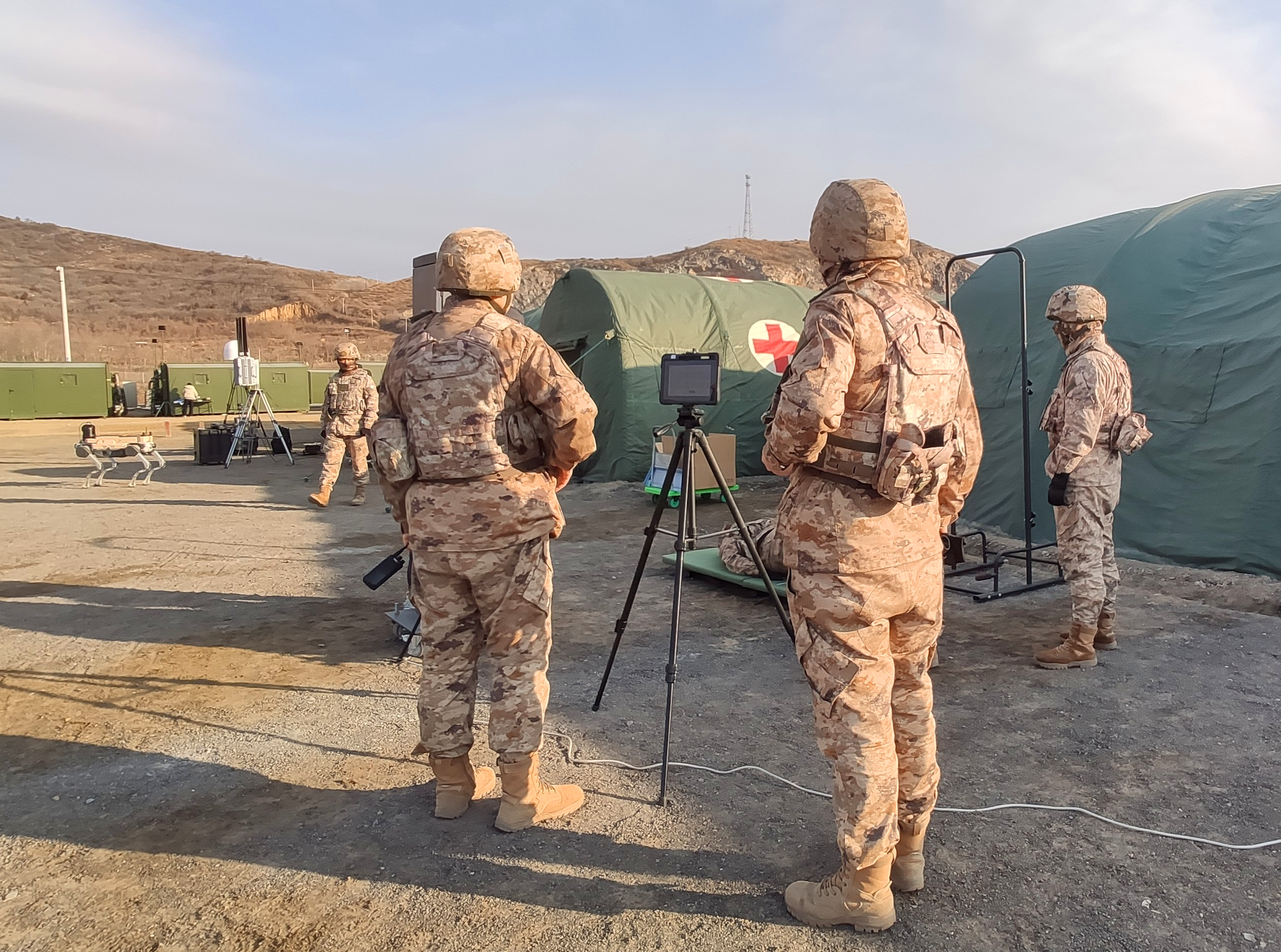 2025年2月18日,正值雨水節氣,聯勤保障部隊967醫院在野外駐訓場舉辦智能化設備展,我司“秋點兵”系列產品應邀參展。作為專注于部隊智能化體能訓練的科技品牌,“秋點兵”展示了固定式和便攜式訓考終端、數據展示系統和數據管理系統等核心產品